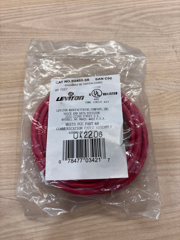 Gigamax 5E patch cord Leviton 5Ft red Leviton