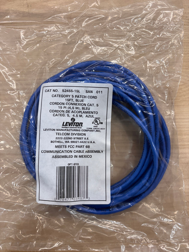 Vendor: Breaker Depot Canada 52455-15L Category 5 patch cord Leviton 15Ft Blue Regular price $19.99