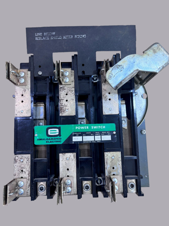 4636 200AMP HEAVY DUTY SAFETY SWITCH HANDLE AMALGAMATED INTERIOR TYPE 4636 AMP: 200AMP VOLTS: 600V AMALGAMATED FUSIBLE SWITCH HANDLE USED EXCELLENT CONDITION ACTUAL HANDLE IN PHOTOSRegular price $95.00