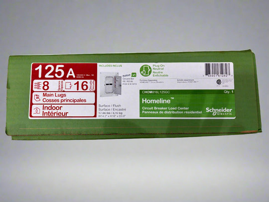 Schneider Electric Homeline™ Main Lug Load Center, 1-Phase, 120/240 VAC, 125 A, 50/60 Hz, 10 kA Interrupt, 8 Circuits, 3-Wire Wiring Configuration,, 6 to 2/0 AWG Al/Cu Wire, Wall Mount, NEMA 1, 6 Enclosure Box, Sheet...Regular price $125.00