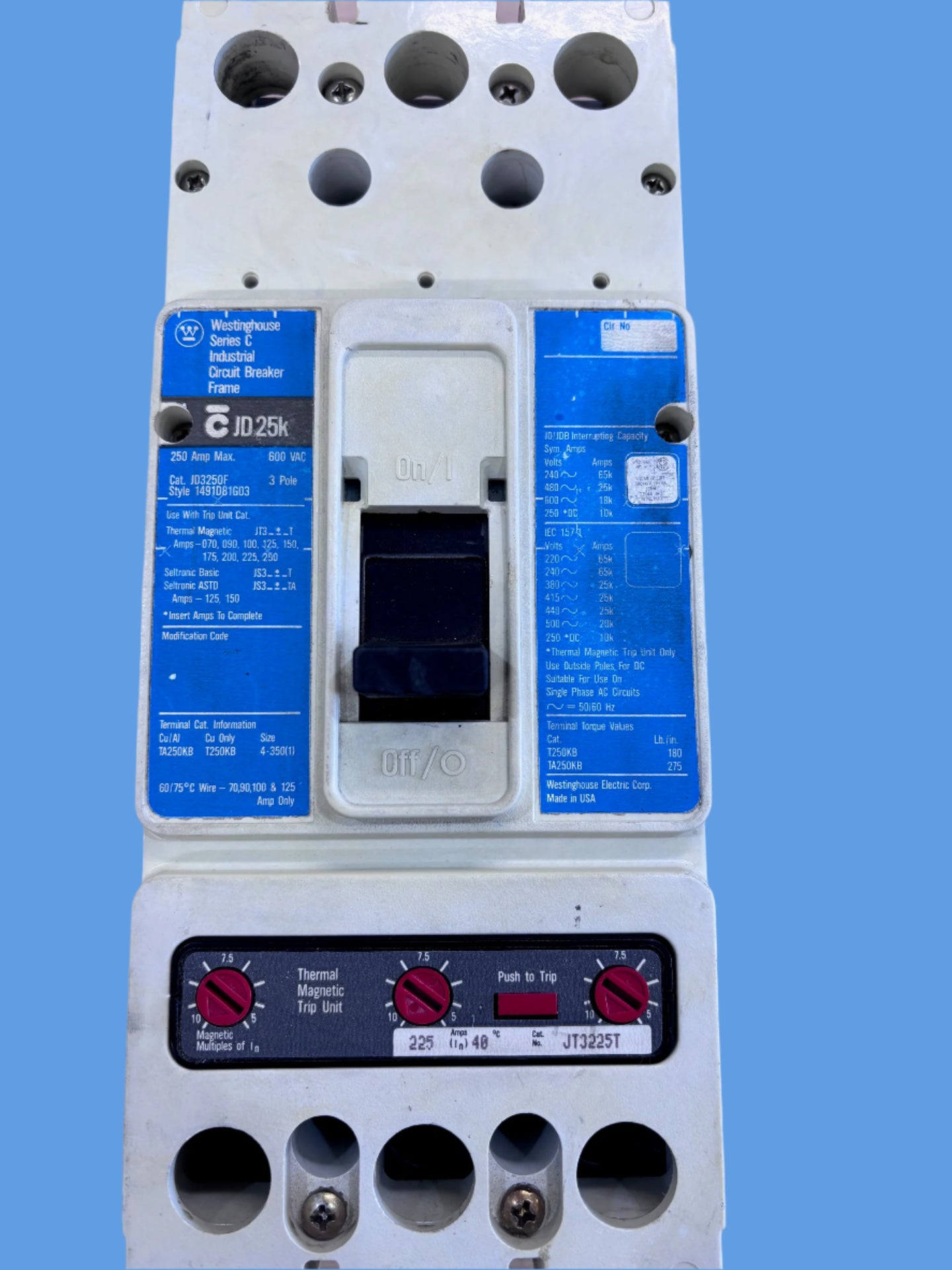 JD3225 225MP CUTLER HAMMER / EATON CIRCUIT BREAKER 240V