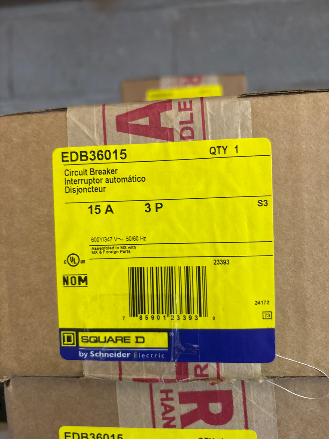 EDB36015 15AMP 600V SQ D ,SQUARE D 3POLE CIRCUIT BREAKER 600V